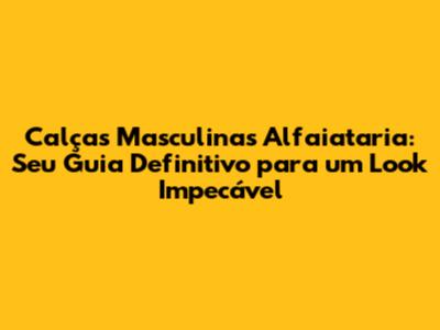 Calças Masculinas Alfaiataria: Guia Completo Para Um Visual Impecável