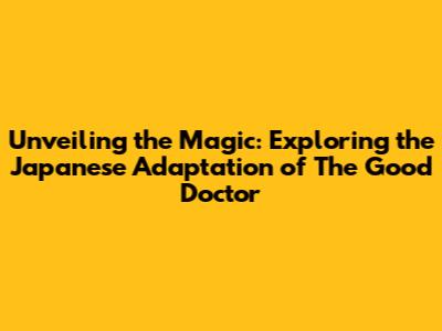 Unveiling The Magic: Exploring The Japanese Adaptation Of 'The Good Doctor'
